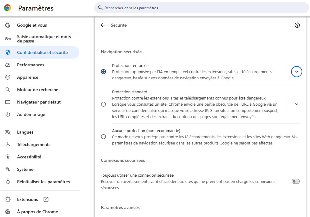 | Protection renforcée | Mac et Windows | Paramètres intégré de Chrome |