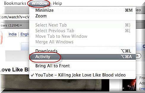 #3. Via la fenêtre d’activité (avant de Safari 6)