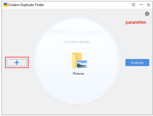 - Ouvrez-le. Cliquez sur le bouton d’ajout pour ajouter un ou plusieurs dossiers pour la recherche image similaire sur pc. Ou vous pouvez faire glisser et déposer directement le dossier dans l’interface.