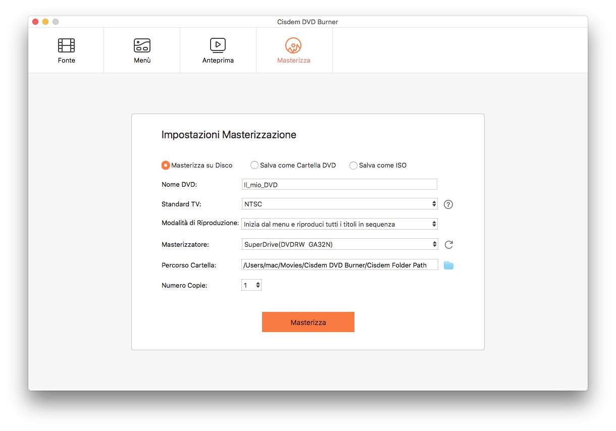 - Masterizza video di YouTube su disco DVD, cartella DVD o ISO