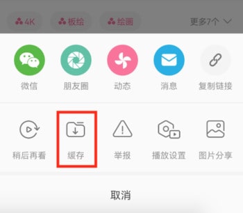 3. 「当前画质」のところをタップすれば画質が選択できるようになります。選択完了後、下にある動画のタイトルをタップします。動画が複数ある場合、「缓存全部」をタップすれば一気に全ての動画をダウンロードできます。