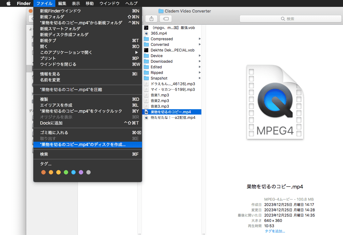 すべてのMac OSで既定でインストールされているファイル管理ソフトとして、Finderは無料のDVD書き込みソフトでもあります。コンピュータにあるすべてのファイルやフォルダ、アプリケーション、ディスクをさまざまな方法で閲覧することができます。しかし、FinderはデータDVDディスクしか作成できなく、DVDプレーヤーで再生できるDVDを作成できませんのでご注意ください。