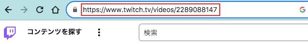 - Twitchでダウンロードしたい動画を開き、URLをコピーします。