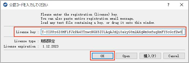 6. テキストボックスに先ほどコピーした公認コードを貼り付けて、「OK」をクリックします。