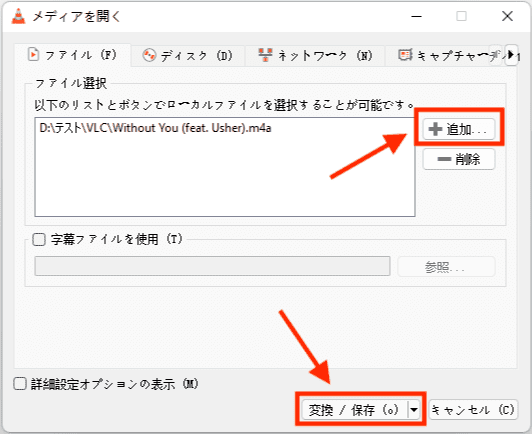 Windows版VLCでM4AをWAVに変換する操作手順: