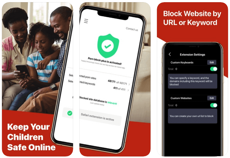 Safariの拡張機能として、Porn Block Plusは使いやすくて、カスタマイズもできます。Porn Block Plusでは自動でアダルトサイト・ページ・画像、また、そのような内容を含むリンクをブロックできます。さらに、問題ないキーワードまで制限するブロッカーもよくみられますが、Porn Block Plusはその「ホワイトリスト」で誤ブロックを避けられます。ユーザーは誤ブロックされたリンクを開発者に通報したら、ブロックは解除されます。その他、アプリ設定で独自のキーワード・ブラックリストを設定できます。