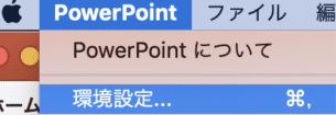 1. MacでPowerPointを起動し、上部のメニューバーで「PowerPoint」>「環境設定」をクリックします。