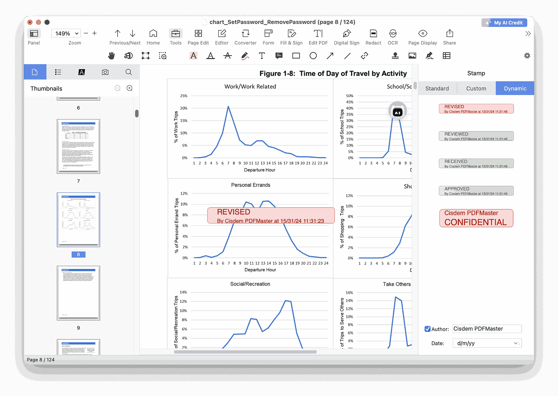 When working as a PDF stamp creator, Cisdem offers 3 types of stamps for you to choose from-- predefined PDF stamp templates, dynamic stamp with author and date and custom image or text stamp. The stamp can be inserted anywhere on a specific PDF page and is easy to copy and paste. Apart from adding stamp to PDF, it is also accessible to add watermarks and signatures to PDF in a breeze.