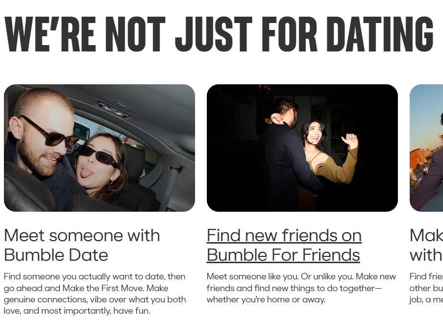 Similar to Tinder, Bumble is also an online dating and networking application that are designed for adults. Users under the age of 18 is not allowed to join it. However, children can easily set to the wrong age, and access inappropriate content on it. Bumble also provides video chat function, which may expose children's personal privacy information or cause fraud.