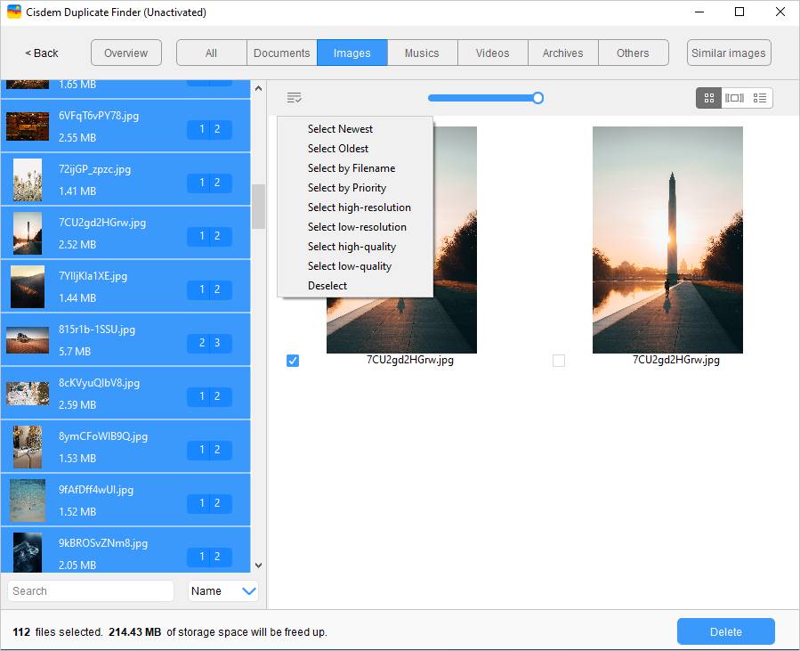 If you're not sure which files to keep, you can also take advantage of the tool's smart selection assistant, which can batch select files for you by date, folder, or drive, etc. This feature is really helpful when you have a large number of duplicate files on computer.