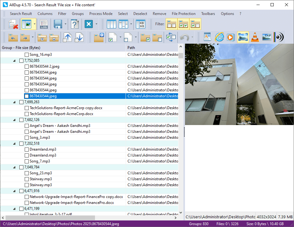 AllDup also offers multiple options for viewing scan results and selecting duplicates for deletion, which all require some configuration. Some important features like deleting duplicates are indirect and hidden. All in all, the app’s interface is overwhelming and confusing.