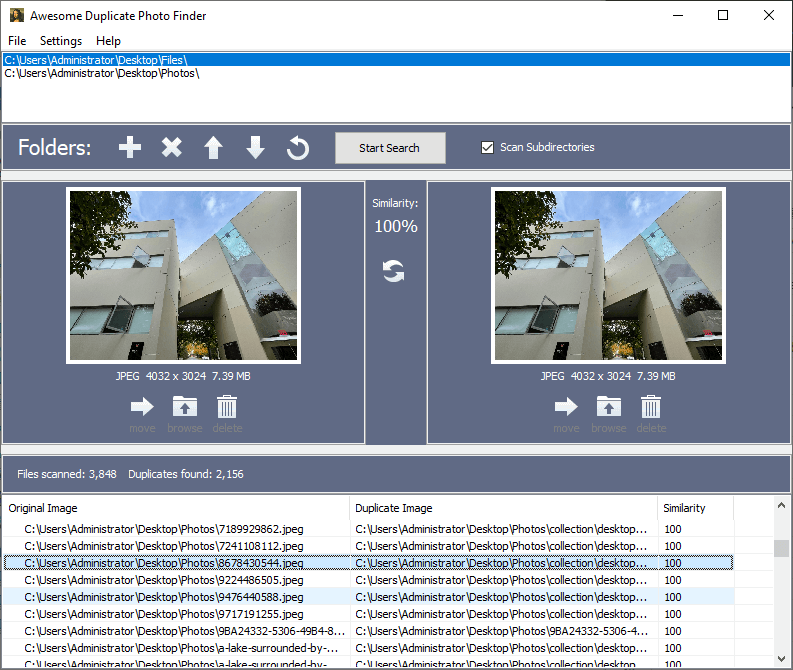 Awesome Duplicate Photo Finder is dedicated to finding duplicate photos. This free duplicate photo finder supports several popular image types including CR2, a Canon RAW format, which can be enough for many users. In the test, it took 7 minutes and 1 second to complete the scan, which is painfully slow.