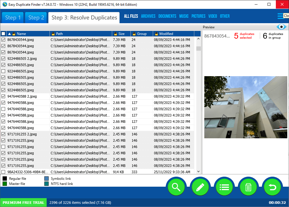 Easy Duplicate Finder has free and paid versions. Its free version can quickly find duplicate files but doesn’t help you remove them.