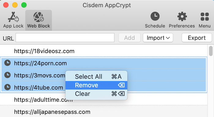 Whether you need to block certain websites, website categories, or even the entire web, Cisdem AppCrypt gives you the full control. See how to do it as follows!