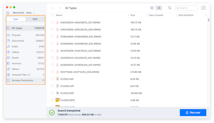 Cisdem Data Recovery will scan the selected volume/partition soon and list the files it scanned out on the left panel. Use the file type/path and filters to find wanted data.