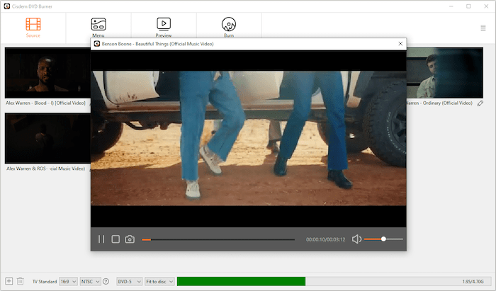 Once you completed editing the menu, you might want to preview the whole DVD, just to get a general idea of how it looks on TVs or computers. To do that, you need to navigate to Preview tab, the previewing will be automatically activated, you are allowed to control the playback using the playback bar below.