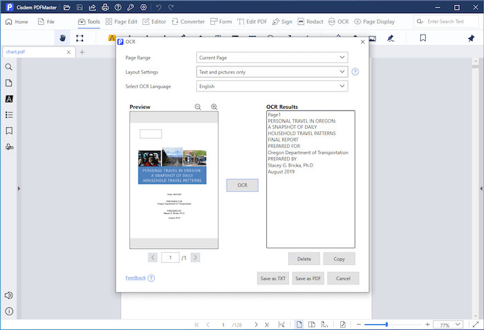 OCR helps a lot to make our work be more productivity, which solves the problem of converting text image to text data. With Cisdem PDFMaster, you can convert scanned PDF/image to an editable PDF or directly extract texts from them.