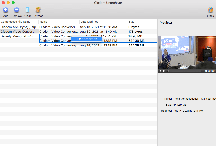 b. Sometimes you will only need to extract part of the files inside an archive, in this situation, you can hold down Command key and click to select the target files, and then right click it to select "Decompress".