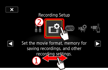- Swipe your finger left or right to bring the “Recording Setup” menu. Then , open it.
