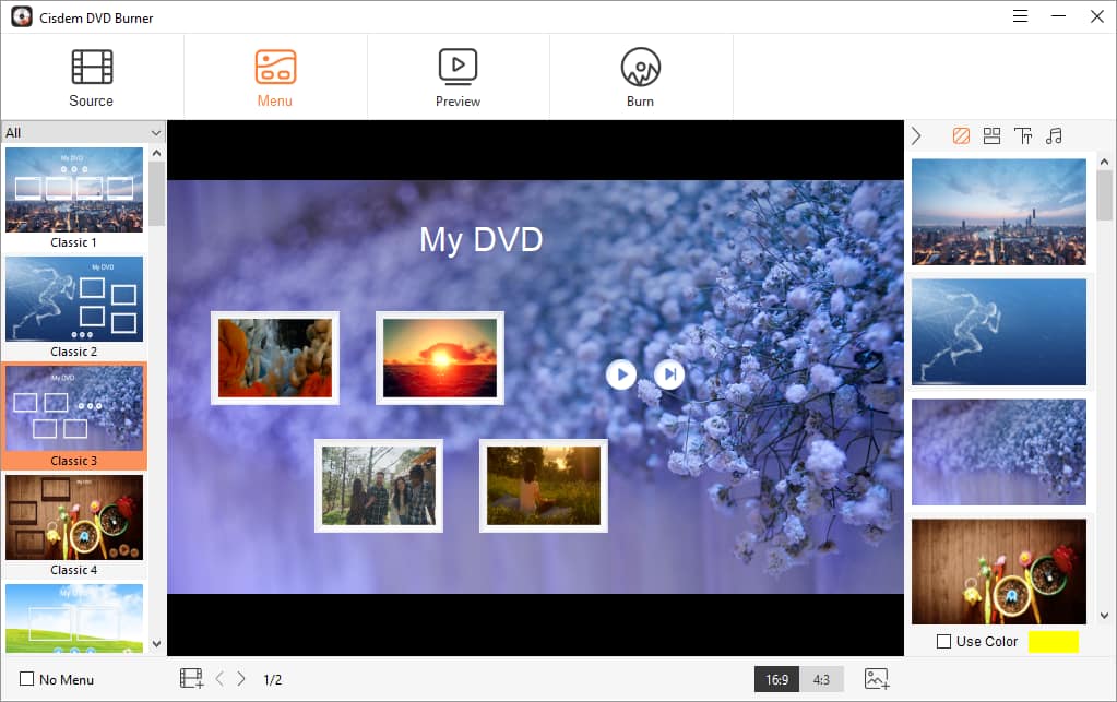 - Offer various backgrounds, buttons, and frames to design the DVD menu