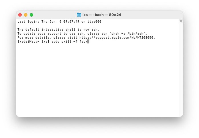 The fsck process can be also a reason to prevent your hard drive from mounting, because it may block the drive connection to ensure data integrity when it detects file system errors on your Mac. So, you should kill this checking process.