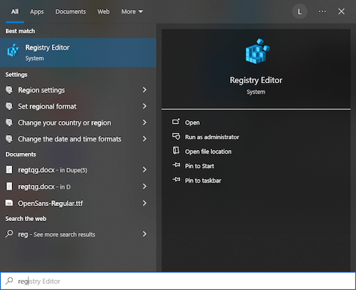 1. From Start menu bar, search for Registry Editor and open it.rename bak file 01