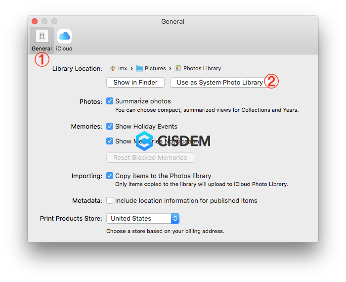 - Restart Photos app, go to Preferences from Apple menu bar, then choose General, click on current photo library and select the wanted one to use as your system photo library.