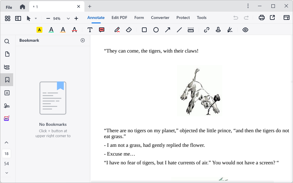 - Create an interactive PDF by inserting form fields, buttons, hyperlinks and bookmarks.
