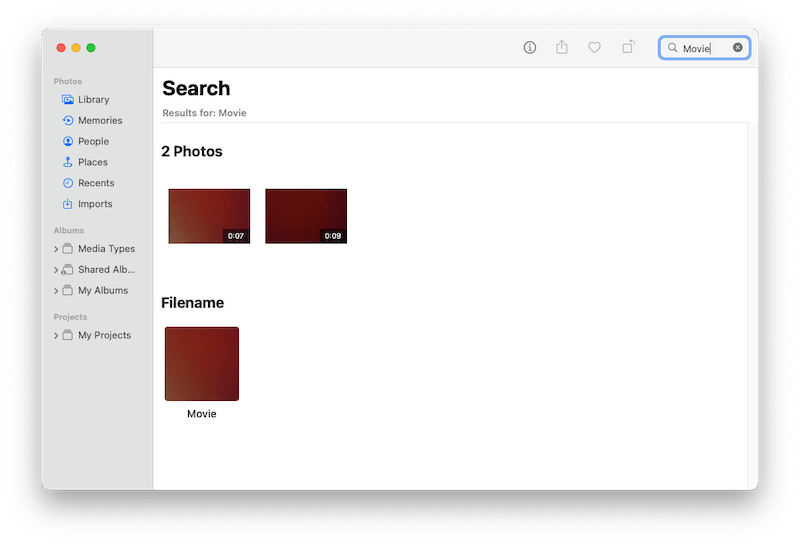 - Type the name of your Photo Booth video in the search box, don’t forget to choose Movie kind. A photo booth video’s file name starts with Movie xxx, while a photo booth picture’s file name starts with Photo xxx.