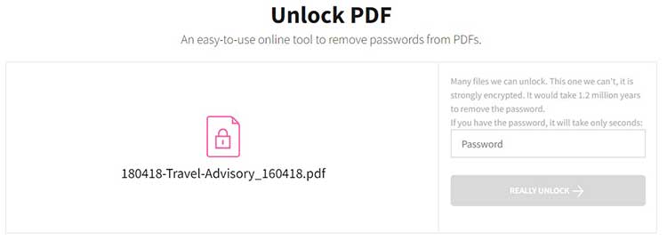 3. If you have forgotten the password to open the PDF, but password is short and simple (contains only numbers or only letters you may be able to unlock it with some online sites or free tools.